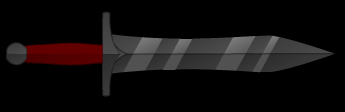 Gladius: Espada curta porém larga com dois gumes e uma ponta. Não tem uma furada muito definida, a empunhadura é simples para uma mão e tem um contrapeso grande que melhora a manobrabilidade.