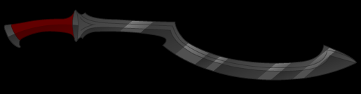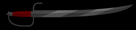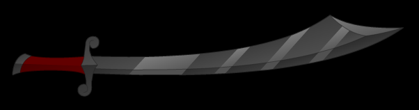 Scimitar: Sua Lâmina é curvada e tem um tamanho médio e largo, tem apenas um gume e uma ponta. Sua guarda é simples e sua empunhadura é para uma mão e recurvado.