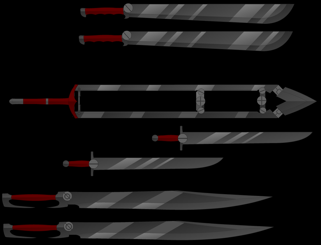 Bustersword: Espada extremamente pesada, longa e larga, muito exagerada, com um gume e uma ponta em forma de um triângulo retângulo. Tem uma guarda simples e uma empunhadura bem longa para ser usada com duas mãos.