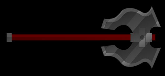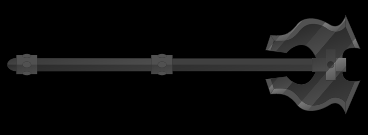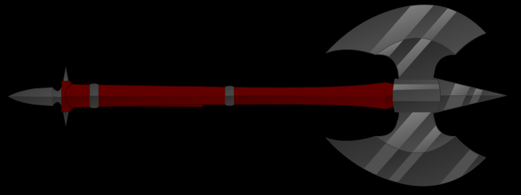 Machado de guerra: Machado grande, com duas lâminas ligadas por um pescoço médio ao cabo, cabo este que é bem longo. Deve ser usado com duas mãos.