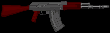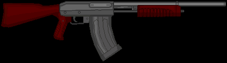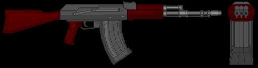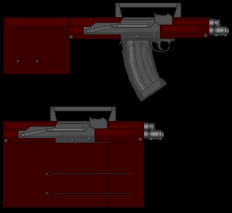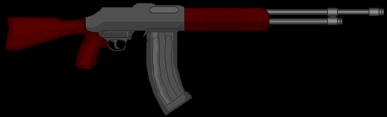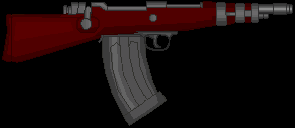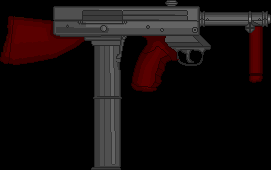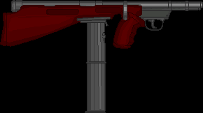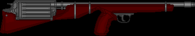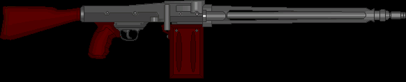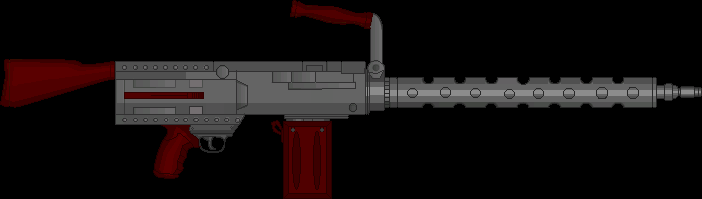 Metralhadora: Arma pesada que usa munição de rifle, isso junto a uma alta cdt. e um pente extremamente grande, a arma pode suprimir um exército pequeno. Sua grande desvantagem é seu tamanho e seu peso que requer uma força maior para ser controlado em combate.
